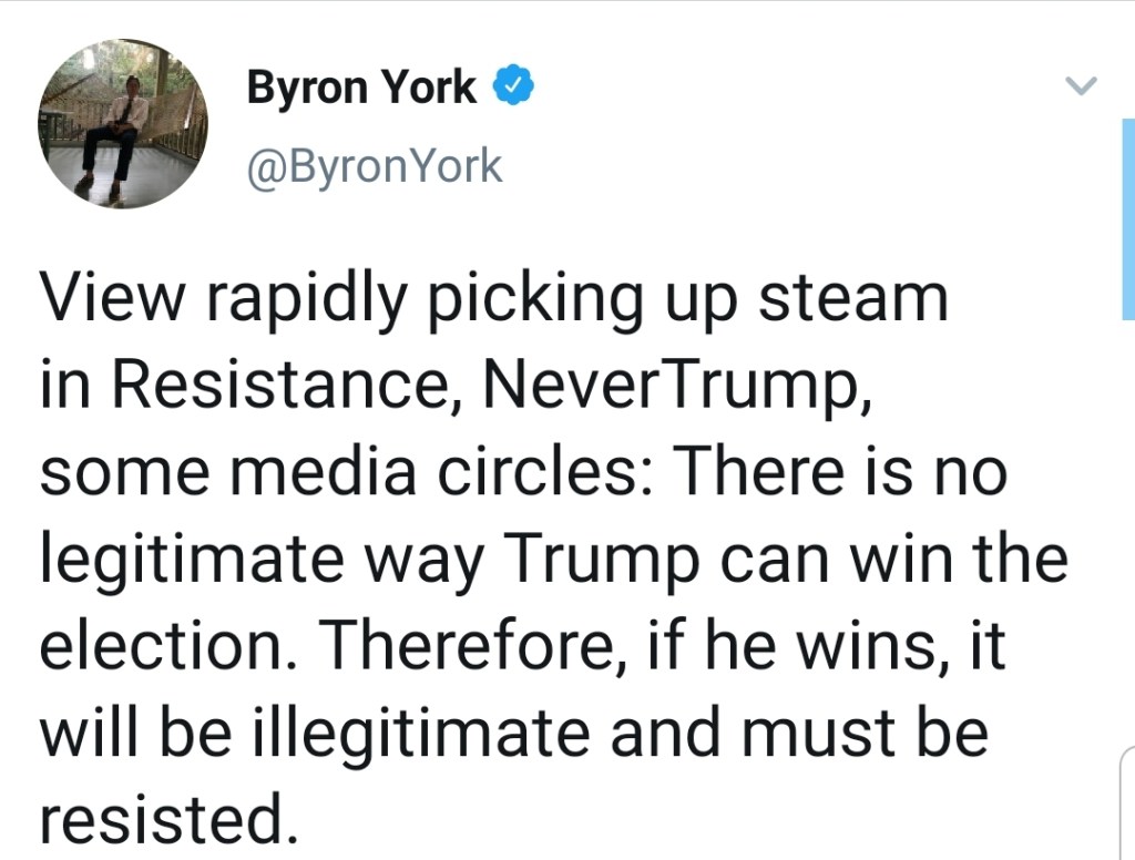 As conservative columnist and Alabama native Byron York intimated recently in the disturbing Tweet above, the impending presidential election may prove to be a catalyst for any number of things: a protracted constitutional crisis, massive rioting and perhaps even threats of nullification or even secession by one or more states.
